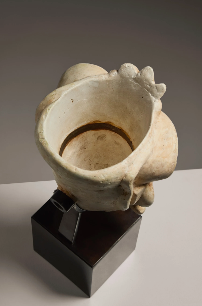 ALBERTO GIACOMETTI (1901-1966) "Masque" or "Masque coiffure", c. 1933 A "Mask" or "Hairdressing mask" plaster sculpture designed by Alberto Giacometti in 1933 for Jean Michel Frank. Gilding traces. 24 x 15.5 x 16.5 cm. 9 1/2 x 6 1/8 x 6 1/2 in.
