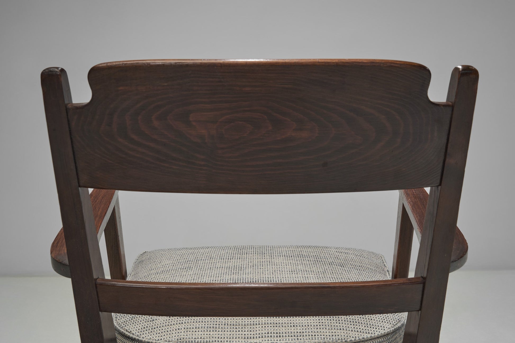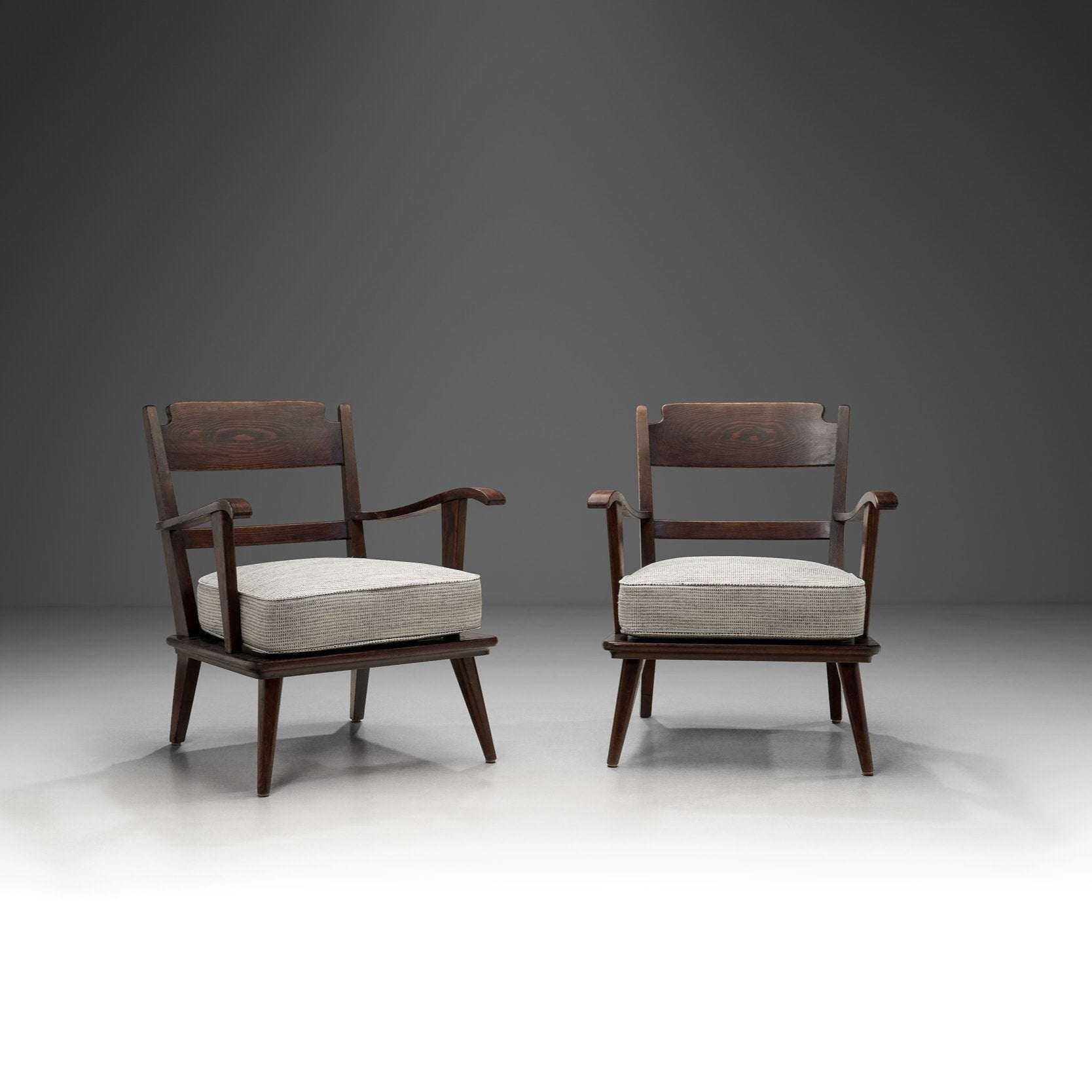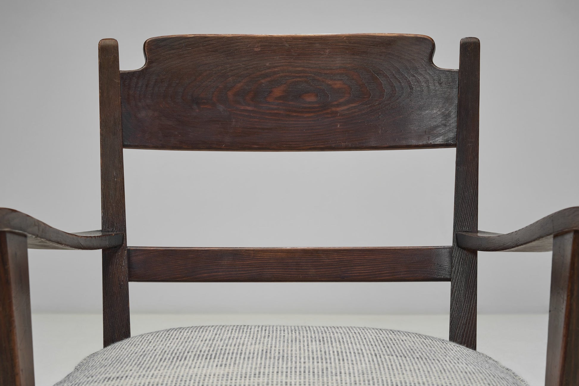 Pair of Dark Stained Pine Armchairs, Europe First half of the 20th century