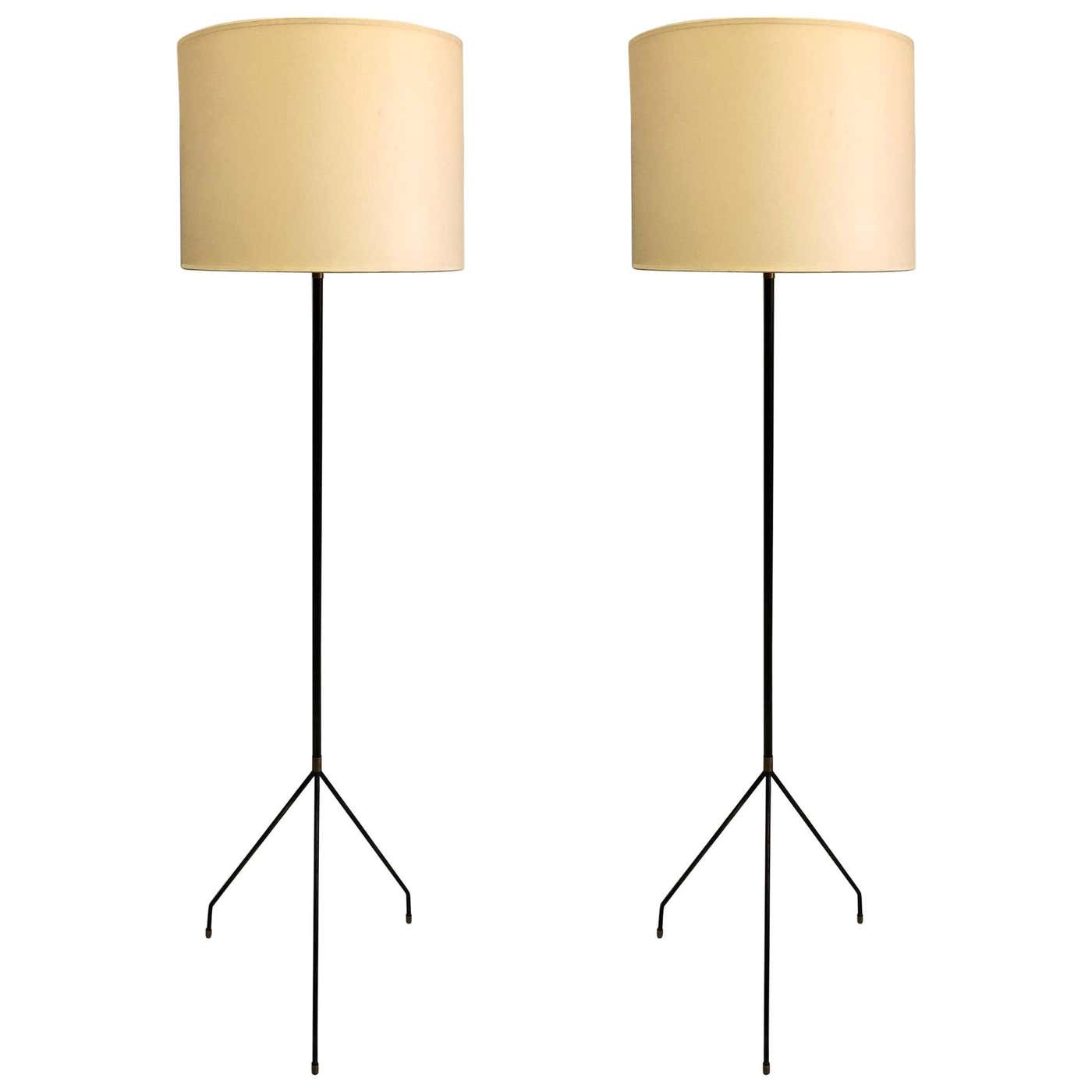 Pair of French Mid-Century Modern / Minimalist Iron Floor Lamps, Pierre Guariche